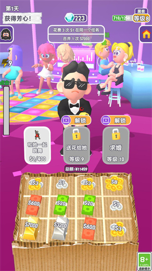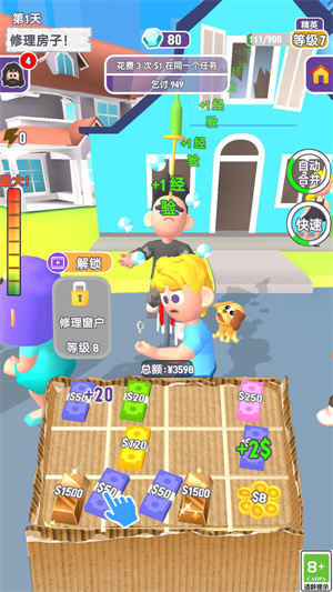 1、优先完成基础任务:前期优先完成“花费3次$1在同一个任务”“合并4次$3”这类基础任务,快速积累经验值提升等级,解锁更高效率的赚钱方式,避免前期资源浪费。