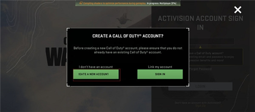 步骤一:使命召唤战区注册入口:游戏主界面-点击sign up-点击create a new account