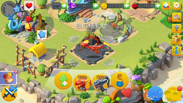 在你的龙之岛修建各种栖息地;让强壮的成年龙杂交繁育出新的龙种;在趣味小游戏中喂养、抚摸并训练你的幼龙;完成各类龙收藏!
