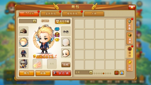 打开游戏,点开背包我们可以看到角色信息,其中分为两个部分:个人属性和背包。