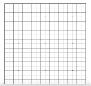 1、星位:位于棋盘上的黑点,以19路棋盘来说共有九个,谓之九星。