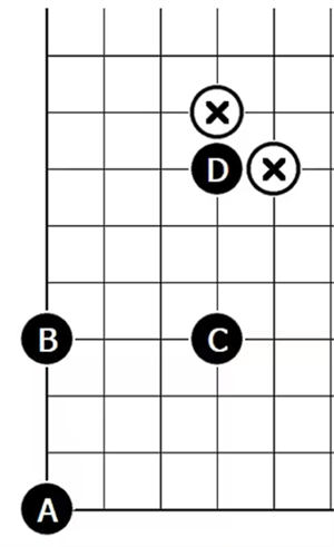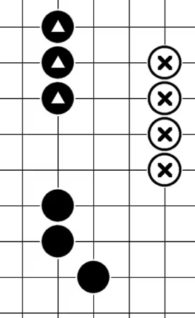在黑子所处位置下,其斜向方向不存在相连的情况,这种情形需要添加棋子。