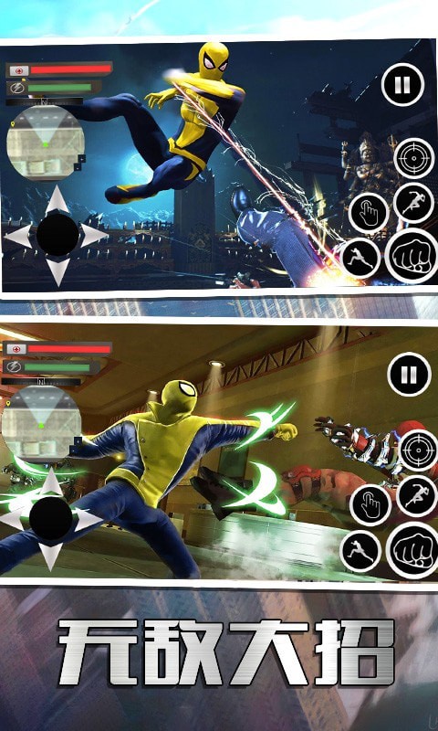 超凡蜘蛛英雄是一款采用3D效果打造的冒险战斗类游戏。在游戏里,玩家能够操控自己的蜘蛛侠,穿梭于形形色色的场景之中,守护城市安全,与各类犯罪分子展开持续战斗。玩家所拥有的技能极为强大,能够轻松赢得战斗的胜利。
