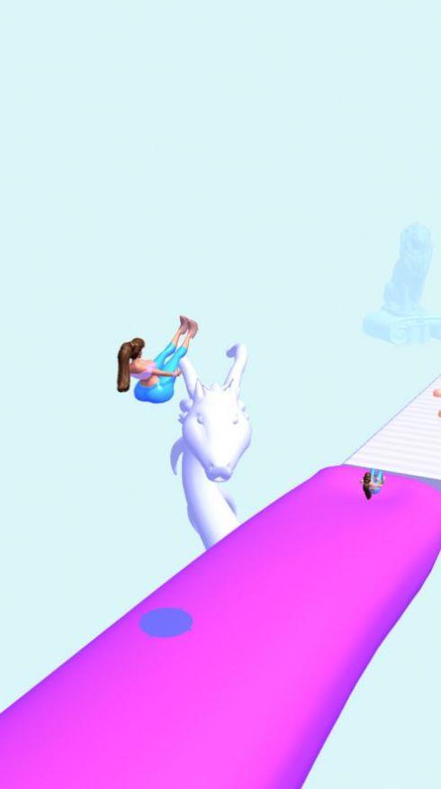 2.具有挑战性的魔性跑酷游戏玩法,好听有趣的音乐,玩家在游戏将会化身一个身材稍胖的女生,在赛道上跑酷通关。