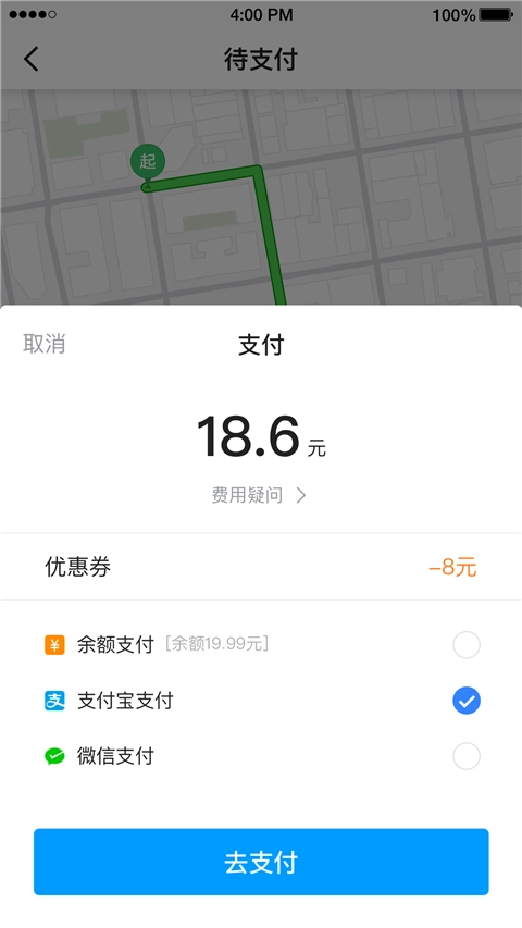 3、选择上车地点和目的地;