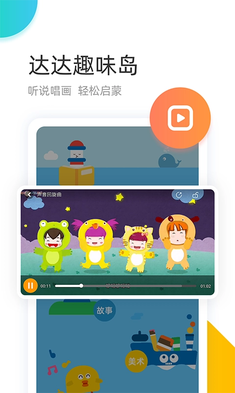 达达爱听吧:依据真实生活场景,供应哄睡、用餐、嬉戏等场景专属歌单,启发孩子智慧,开启孩子想象的大门。