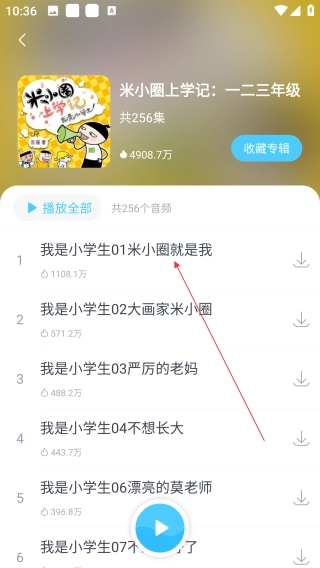 2、故事页选感兴趣的专辑,如【米小圈上学记】。