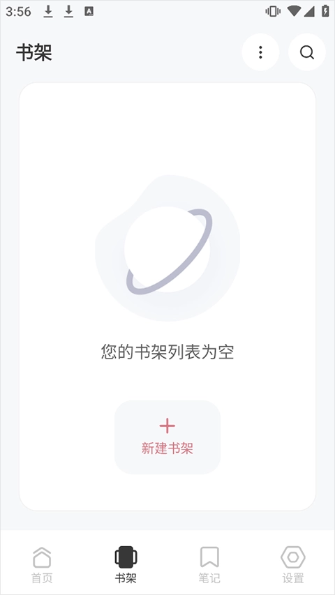 3、进入书架页面可以新建或添加书架以便管理书籍