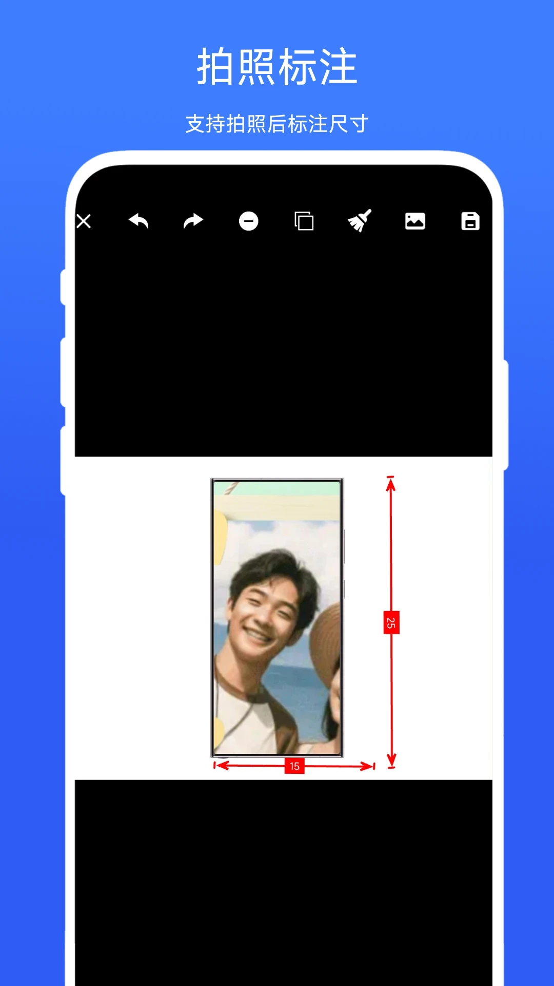 拍照标注功能说明:该功能支持在拍摄展品后对其尺寸进行标注。