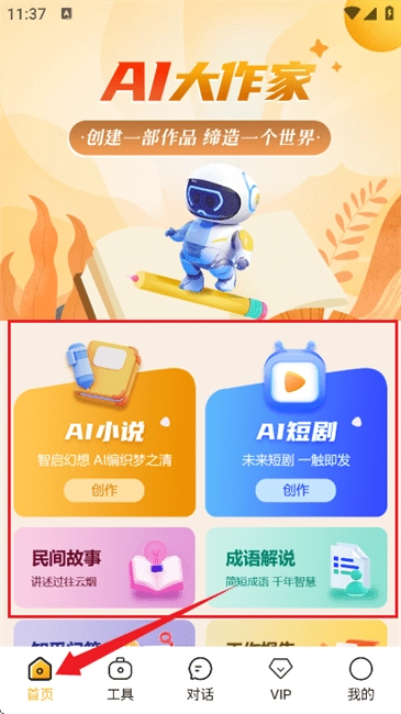 2. AI 全流程助力:从构思大纲、设定角色,到文字润色、情节优化,让灵感快速落地。