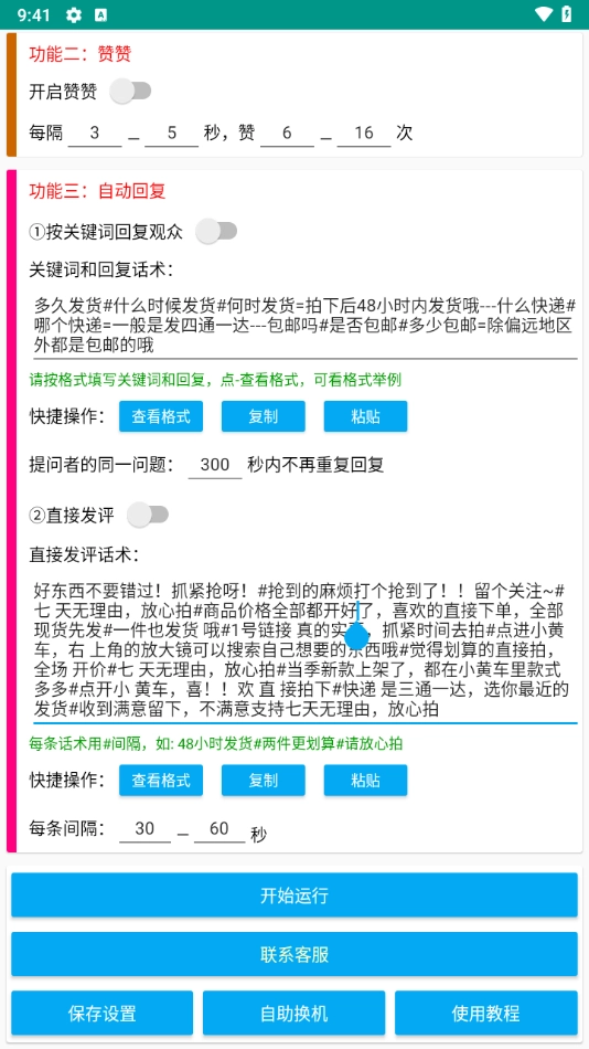 功能二:自动回复。此功能既能针对关键词进行回复,也能按预设话术回复,同时还能发布评论内容。