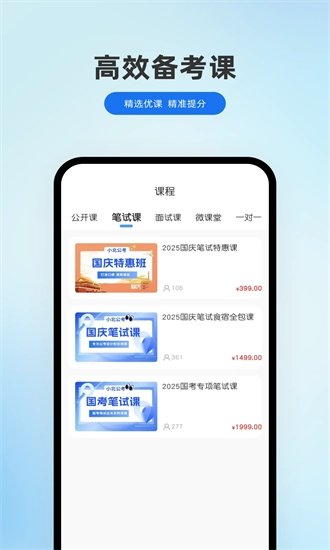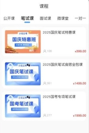 软件内设有公考的笔试课程、面试课程等,分类清晰,方便用户选择。