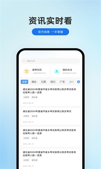 用户能够对自己计划报考地区进行关注操作,如此一来,便能更便捷地查看该地区的考试资讯。