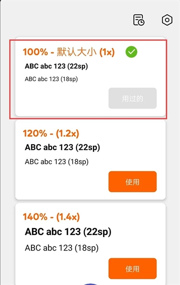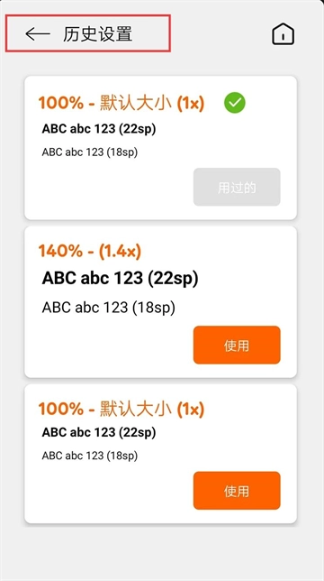 2. 切换到历史设置页面,查看以往字体大小配置的记录,根据自身需求选择使用历史字号方案。