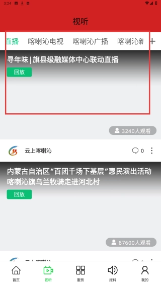 2、在视听页的【直播】分类中,能够查看《寻年味|旗县级融媒体中心联动直播》等直播回放。