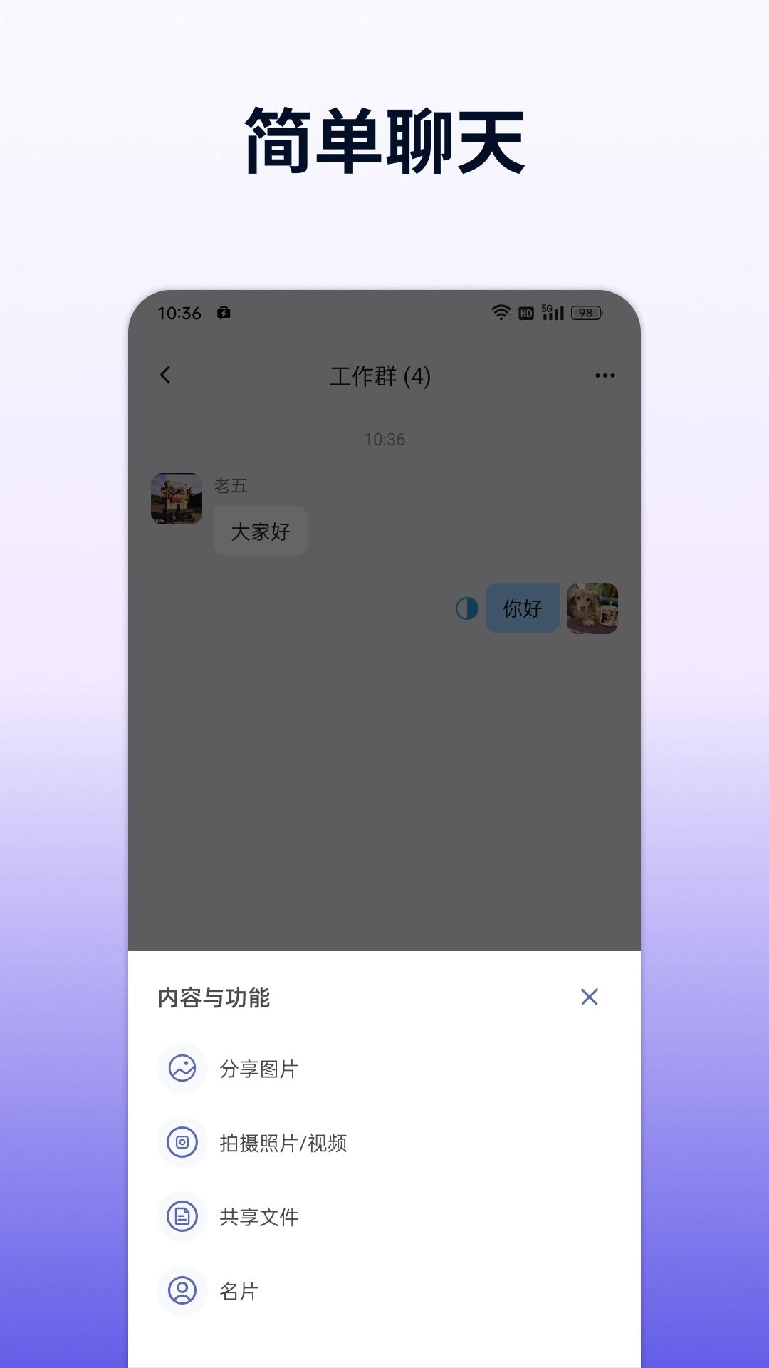 支持公司内部员工相互发送消息,可采用文字、图片、语音等形式,助力员工间高效开展工作沟通。