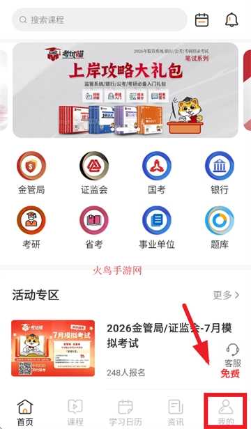 开启考试喵,进入首页后,轻点“我的”选项。