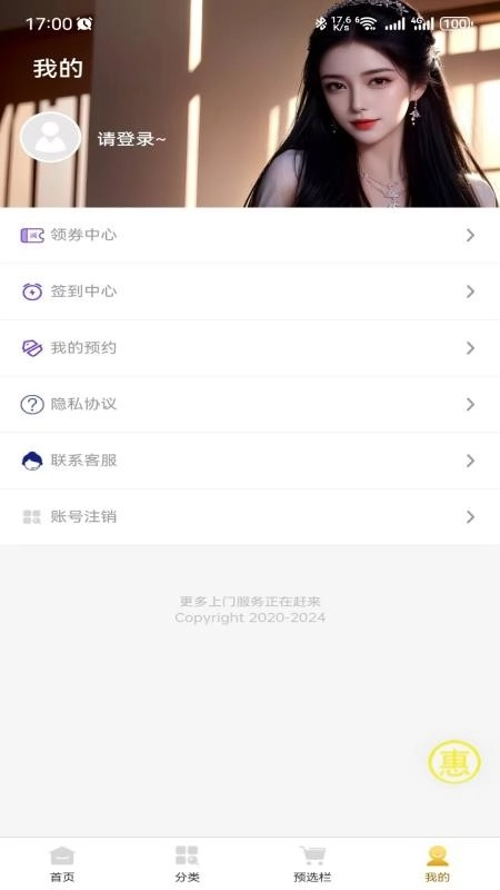 1、在软件中用户可以进入到分类页面根据服务分类查找所需服务下单;