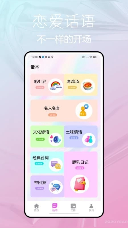 2、进入到话术页面中可以查看到各种各样的恋爱话术资源内容;