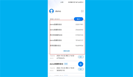 ①若您此前是以会议ID的方式加入会议,那么您可以点击会议ID输入位置的下拉图标,接着在下拉框里点击相应的会议,即可直接入会。