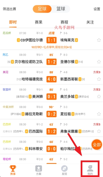 首先安装出奇体育应用程序,安装完成后将其打开。待成功进入出奇体育的赛事首页界面后,在页面上找到并点击“我的”选项。