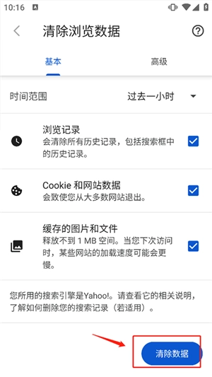 3、然后在基本和高级页面中分别勾选你要清理的数据,再点击清除数据即可