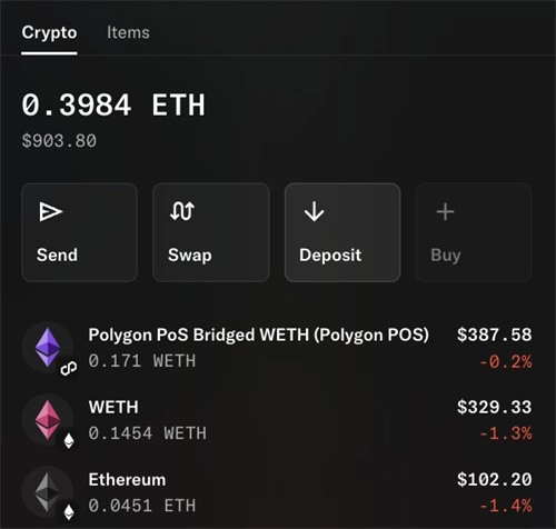3、点击“兑换”按钮可将一种代币兑换成另一种代币,例如将 ETH 兑换成 WETH 以进行商品交易。