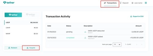 1、首先,登录您的 Tether.to 帐户,然后单击 Acquire。