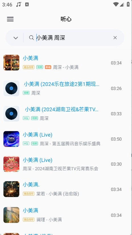 借助关键词能快速定位歌曲,支持从歌手、歌名、专辑等多个维度进行搜索,还为用户提供不同版本的资源以供挑选。