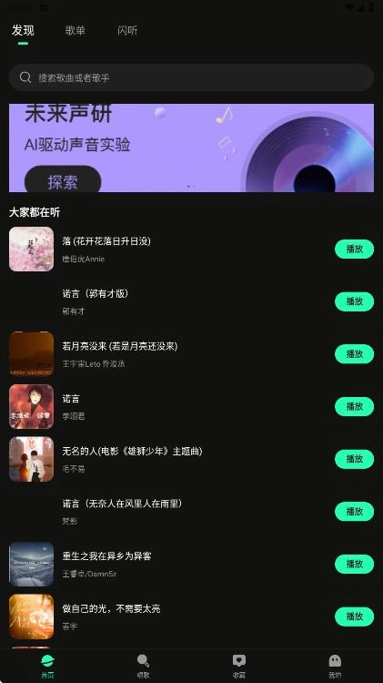 1、安装后注册账号,进入首页查看歌曲,发现更多内容。
