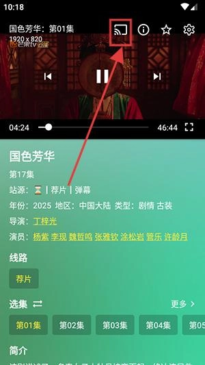 3. 挑选并进入特定影视的播放界面,于视频播放控制栏的上方,寻找到标有投屏图标的按钮。