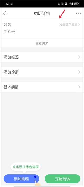 (4)这时候点击“开始随访”,填写患者的姓名和联系方式,发送邀请。