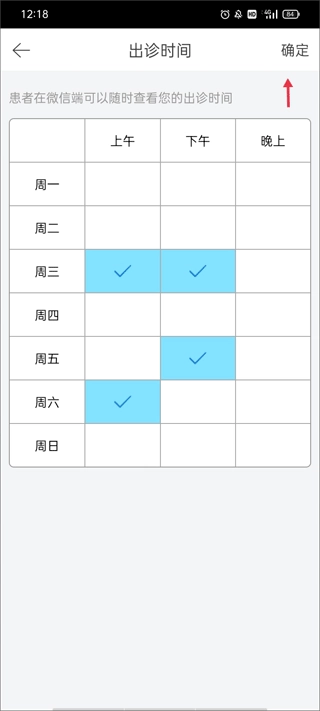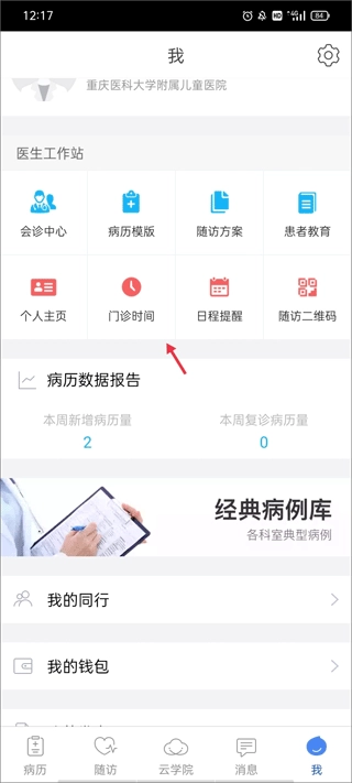 (1)点击下方菜单栏【我】,选择上方的“门诊时间”。