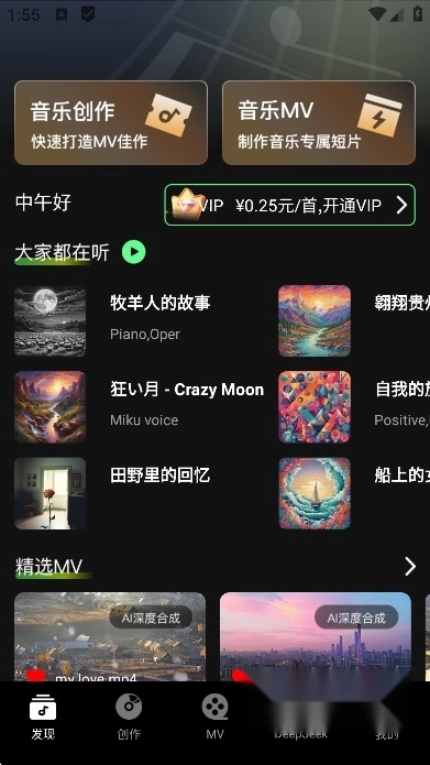免费版的Ai一键成曲软件,是依托人工智能技术打造的音乐创作利器。它能实现从音乐生成到MV制作的一站式创作,哪怕没有专业乐理知识,也能迅速创作出高品质音乐作品,非常适合音乐爱好者、内容创作者等不同类型的用户。借助这款软件中的AI工具,用户可快速生成高质量音乐视频。