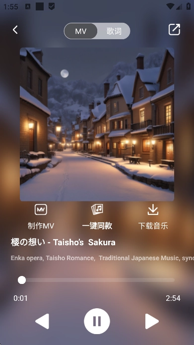MV 制作功能涵盖 MV 视频制作模块。在此模块中,当用户选定视觉主题后,AI 便会自动为其匹配音乐,并生成动态画面。不仅如此,用户还能够对字幕样式、转场特效等元素进行自定义设置,进而达成从音乐创作到视频制作的一站式服务体验。