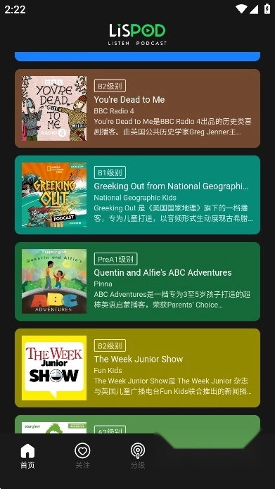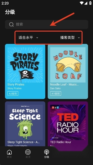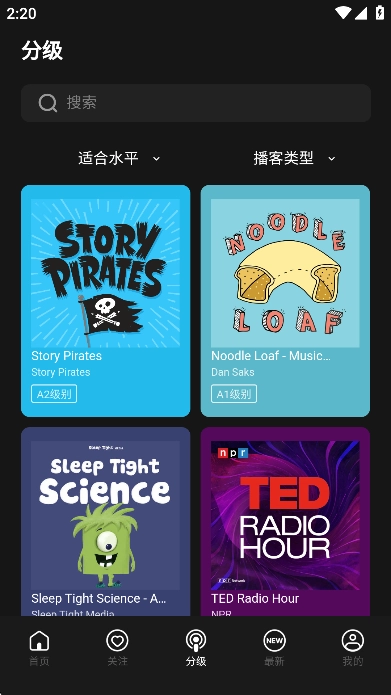 用户们也可以直接根据个人英语水平和播客类型,选择自己喜欢的英语分级播客