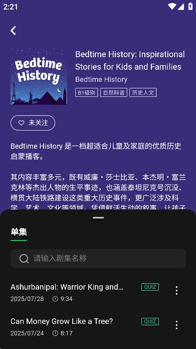 精准分级,内容专业:播客的核心亮点是依据难度对内容进行精准分级,主题丰富多样,专业程度高,可满足不同水平学习者的需求,使学习更具针对性与效率。