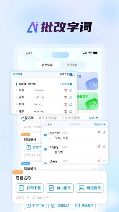 批改邦支持语文和英语作文的批改,支持默写作业的批改。