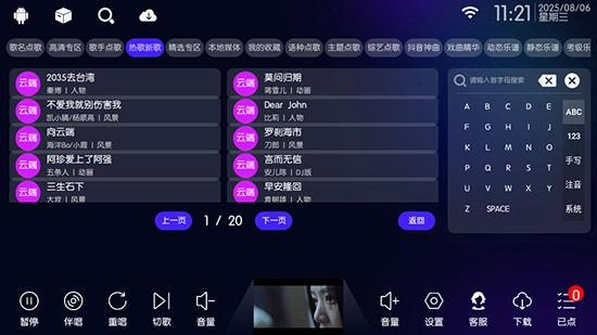 2. 播放操控:具备暂停、伴唱与原唱切换、重唱、歌曲切换、音量调控、降调及升调等功能,可灵活调节演唱状态。
