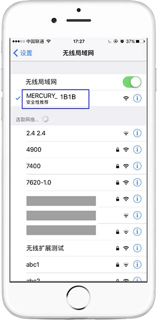 2、开启手机的无线设置,与路由器出厂时的无线信号进行连接。在此需留意:要是属于不支持多频合一的双频无线路由器,这类双频无线路由器默认会发出MERCURY _XXXX和MERCURY_5G_XXXX这两个无线信号(其中XXXX代表路由器底部标贴MAC地址的后四位),任选一个信号连接就行。而单频无线路由器仅发射一个信号,其名称是MERCURY _XXXX 。