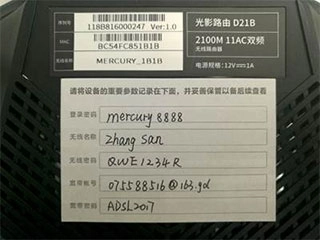 7、其他说明:Mercury路由器考虑到大家可能容易忘记路由器管理员密码和无线密码,贴心准备了一张小贴纸。建议您把设置的相关密码写在随产品配送的“路由器参数记录标贴”上,然后将该标签粘贴在路由器底部,这样日后管理起来会更加方便。