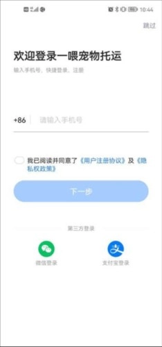 1、首先我们打开一喂宠物托运,接着进行登录;