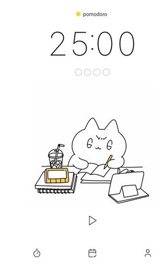 1. 进入波莫猫软件的主页,点击页面中间的三角形图标,就能开启专注计时。