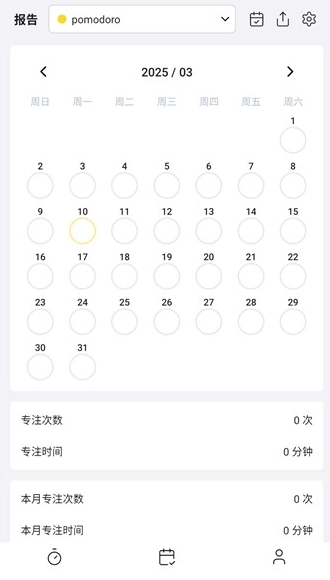 2. 打开软件进入首页,即可开始使用。点击页面下方的三角图标,就能启动相应的专注计时功能。