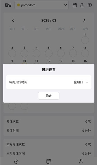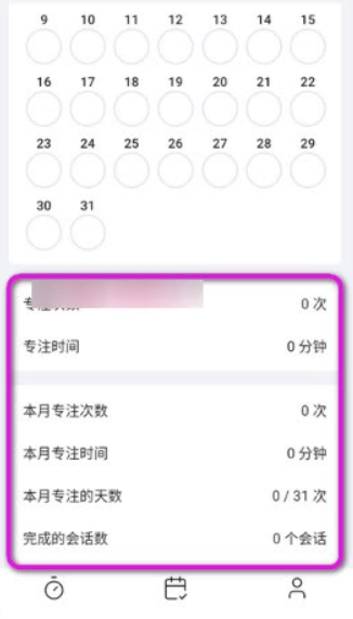 2、点击最下方第二个图标,进入日历,你就能够看到专注的次数和时间