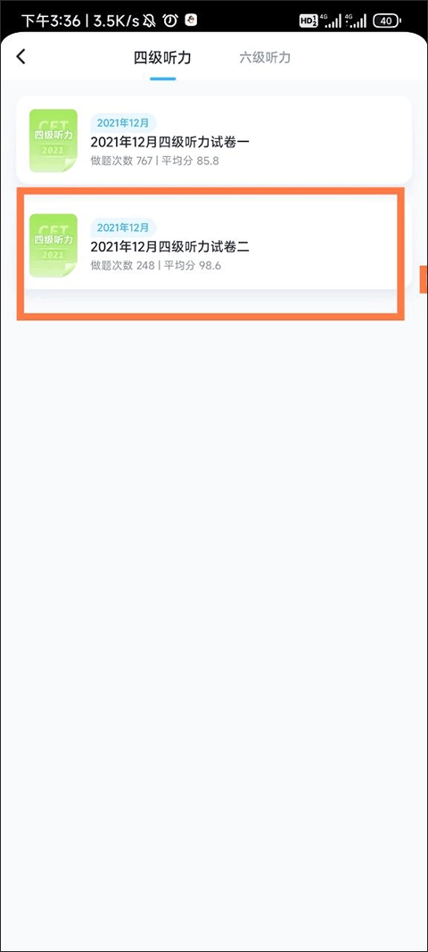 2、在此,我们能够看到里面存有许多前几年的听力测试卷,任选一张卷子来进行测试即可。