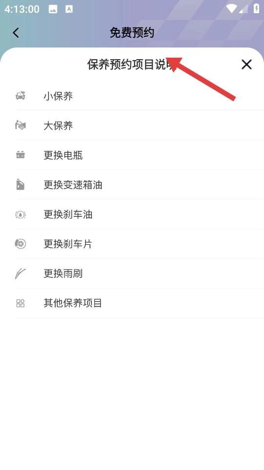 3、在免费预约的保养项目说明页面,小保养、大保养、更换电瓶等具体内容被清晰罗列,助力车主明晰不同养护服务的范畴。如此一来,车主在挑选项目时能更加清楚明白,确保养车需求得到精准匹配。