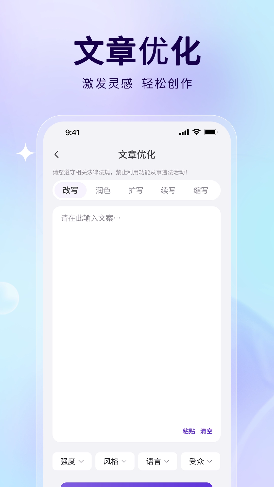 AiPPT制作助手App,一款能够自动制作PPT的软件。这款App不仅拥有海量精彩的PPT模板,还提供丰富的辅助创作功能供你使用,像AI写文章、文章改写、文章润色、文章扩写、文章续写、文章缩写等等。借助它,你能极速创建各类高品质的PPT文件,快来体验吧!