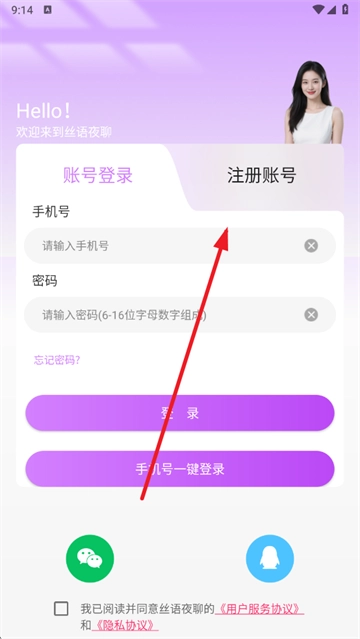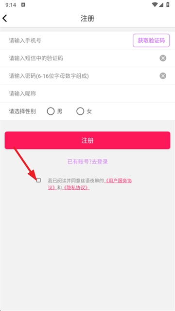 4、请按照要求输入手机号码与密码,务必记得勾选用户协议以及隐私政策。