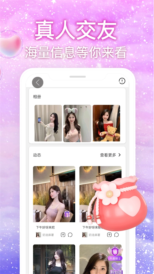 【礼物表意】能够向心仪的TA送上全屏礼物。线上互动约会,助你探寻对方真实喜好,助力你赢得她的倾心。